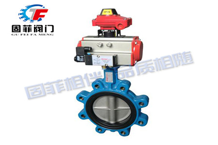 GFTD671X氣動(dòng)美標凸耳式蝶閥啟閉件是一個(gè)圓盤(pán)形的蝶板,在閥體內繞其自身的軸線(xiàn)旋轉,從而達到啟閉或調節的閥門(mén)叫蝶閥。蝶閥全開(kāi)到全關(guān)通常是小于900 ,蝶閥和蝶桿本身沒(méi)有自鎖有力,為了蝶板的定位,要在閥桿上加裝蝸輪減速器。采用蝸輪減速器,不僅可以使蝶板具有自鎖能力,使蝶板停止在任意位置上,還能改善閥門(mén)的操作性能。